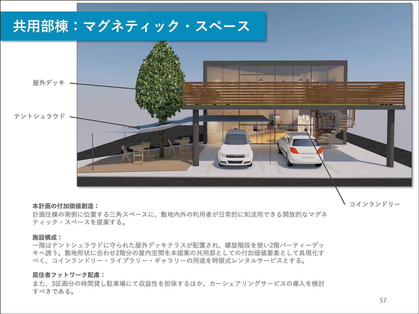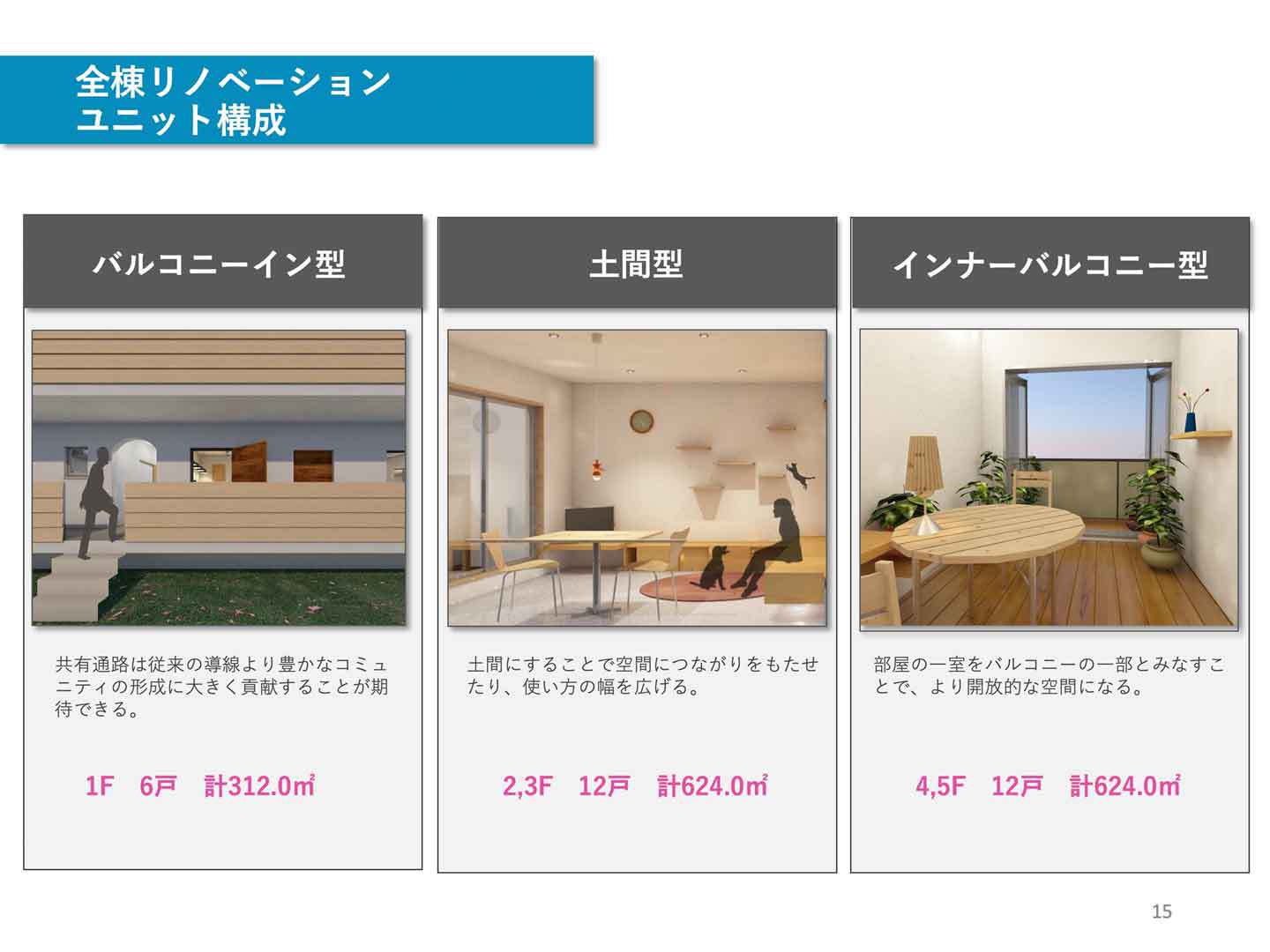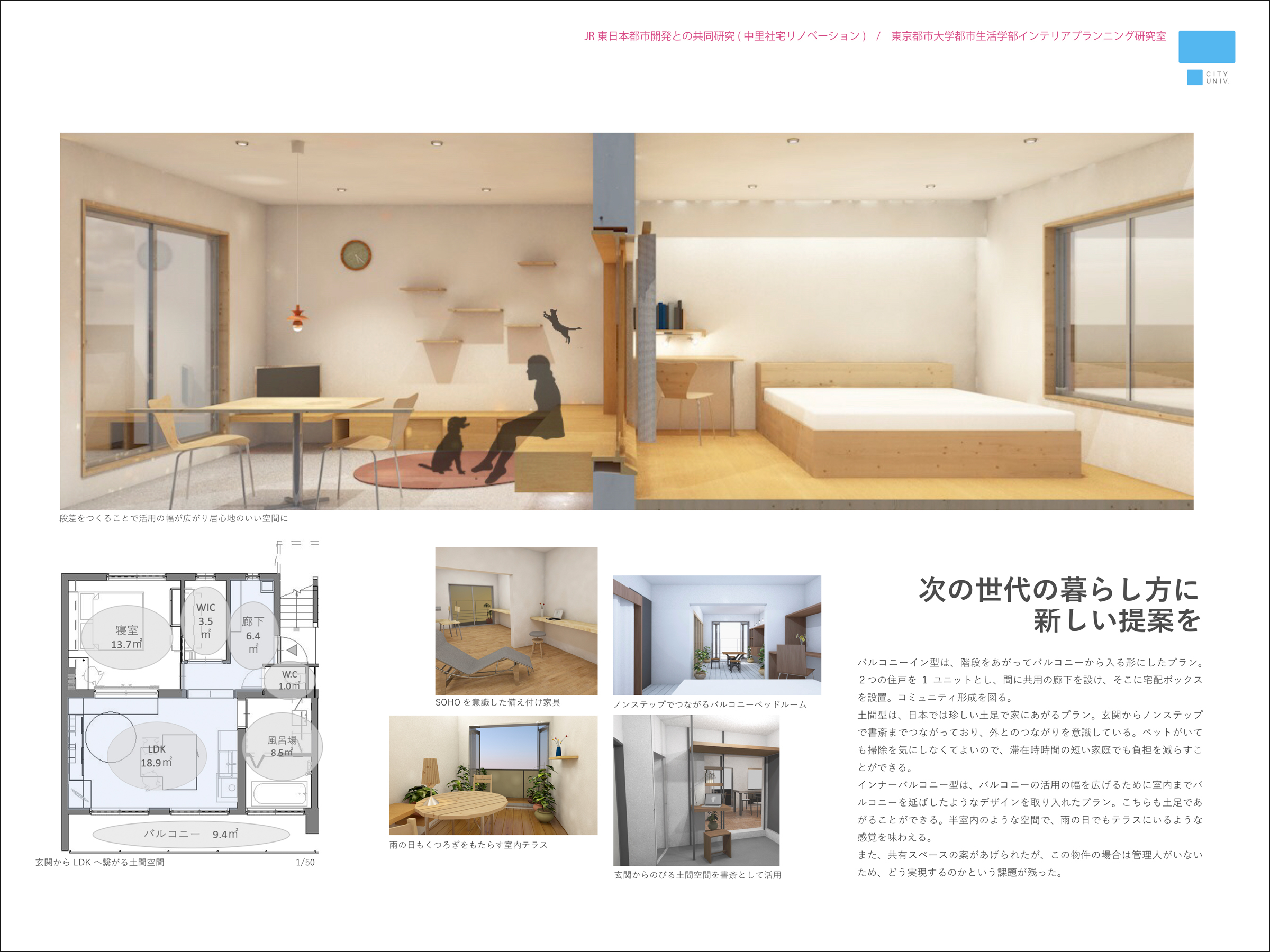 また当該共同研究で提案・プランニングされたモデルは、都内壁式RC構造5階建集合住宅リノベーション事業における実施設計・施工に向けた基本計画に反映されるものとする。