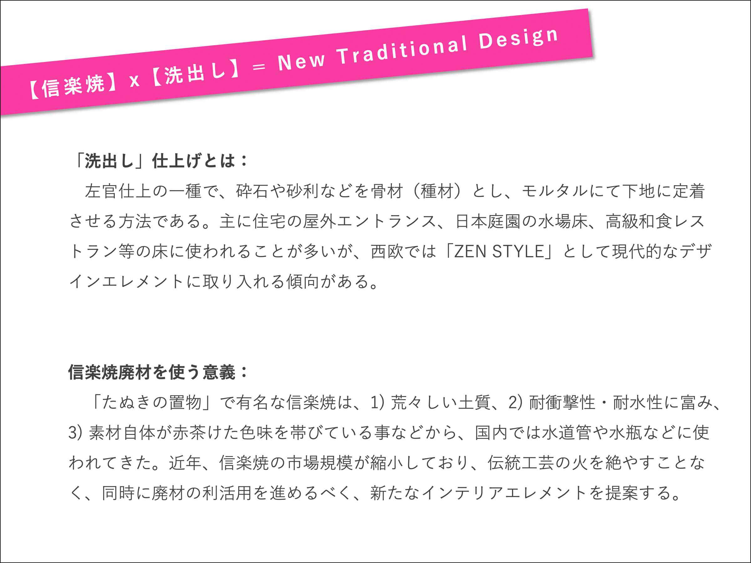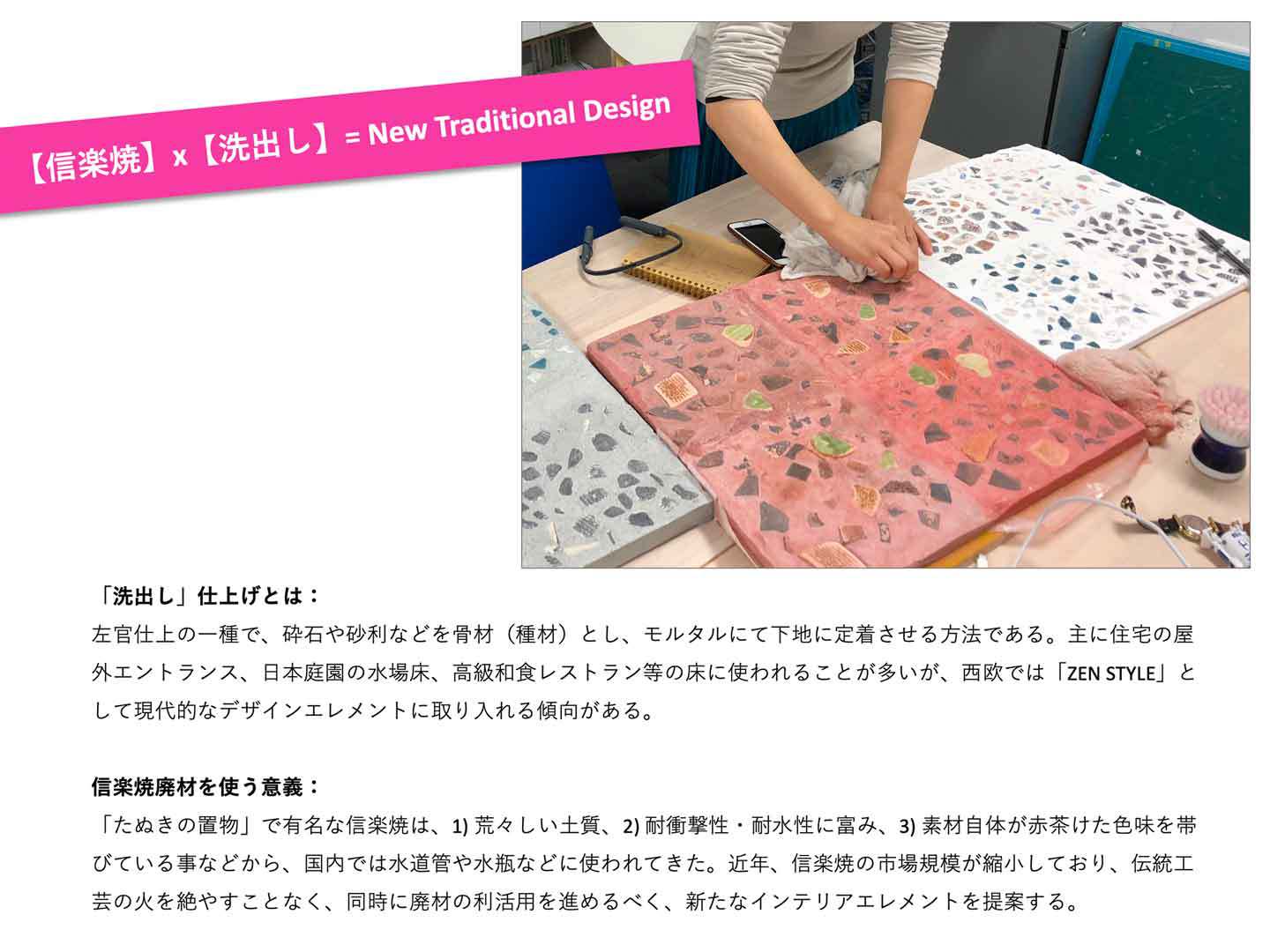 - 【共同研究】「信楽焼」陶器の骨材を用いたインテリア建材の開発/A Study on Interior Finishing Materials Using Ceramic Scraps of "Shigaraki-yaki"