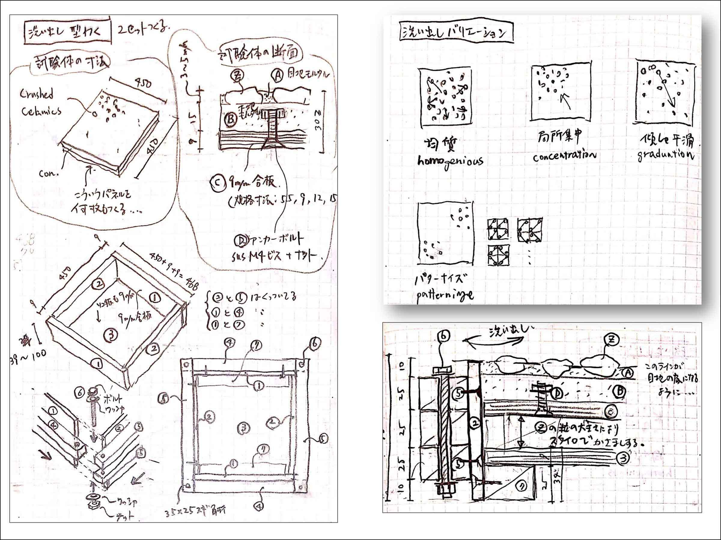 本研究は、信楽産陶器の、高粘性かつ粗粒度の土質特性に着目し、その生産廃材等を有効活用すべく、建築空間のインテリア・エクステリア建材に活用する方法を材料実験等を通して検討することを目的としている。概要としては、信楽陶器の生産過程で生じた廃材粒子を、粒子形状やサイズ・土質部分および釉薬面の色彩、平滑性別に分類・管理し、一般的な建築仕上工法であるモルタル金ゴテ仕上げ、あるいは洗出し仕上げの骨材として用い、数種のサンプルパネルを構築し、性能評価を行うものとする。評価方法は、a)蓄熱・放熱特性、b)表面平滑特性、c)色彩感性モデル検討を予定している。