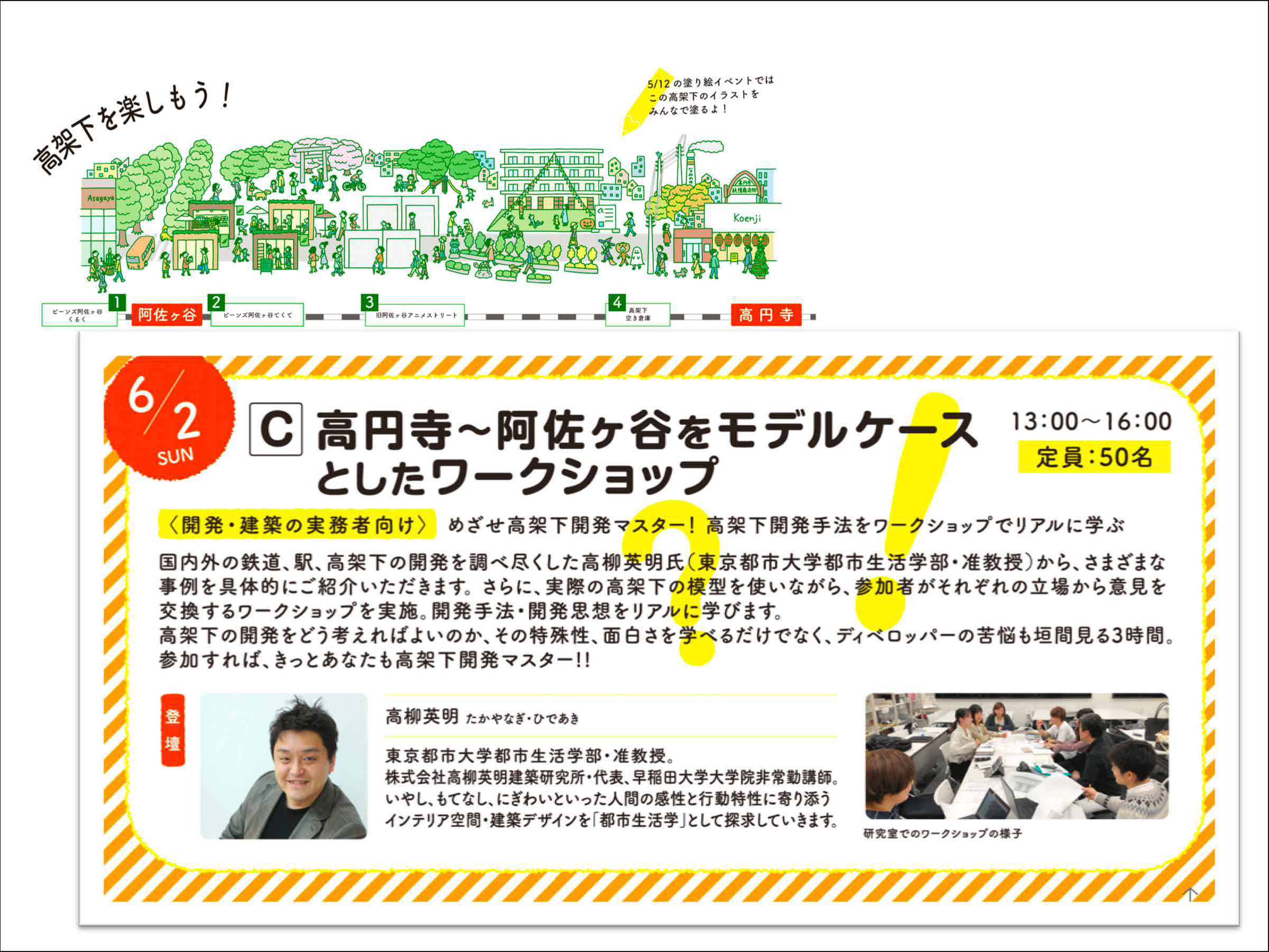 - 【受託研究】高円寺-阿佐ヶ谷地区の高架下テナント開発にかかるモデルワークショップ/JR East Railway underpass tenant development@Koenji